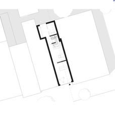 Das Grundstück bot eine besondere Herausforderung, da es enorm schmal und lang gezogen ist. In der Breite misst es ungefähr 3,5 Meter und in der Tiefe etwas mehr als 11 Meter. Es liegt an einer mittelmäßig belebten Straße mit einigen Geschäften in direkter Nachbarschaft.